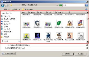 「名前」と表記されている方のエディットボックスには、文字通り保存する画像につけるファイル名を入力します。